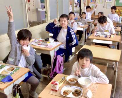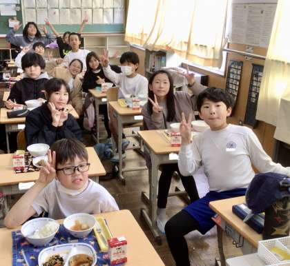 11月19日(火)の梅坪小(7)5年生の給食風景