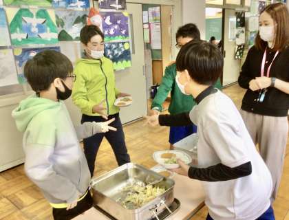11月20日(水)の梅坪小(7)6年生の給食風景
