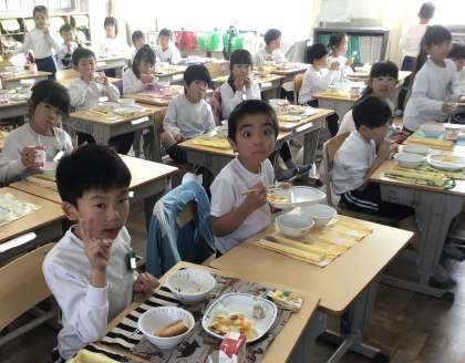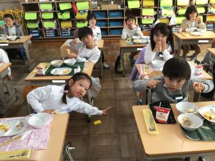 11月21日(木)の梅坪小(6)1年生の給食風景です!
