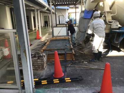 今日は、室外機が設置されると思われるスペースにセメントが入りました。