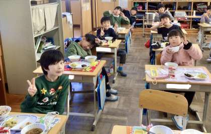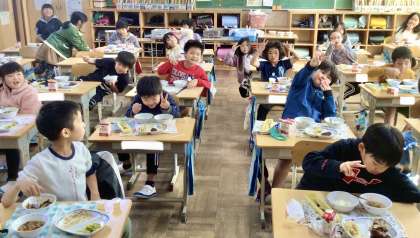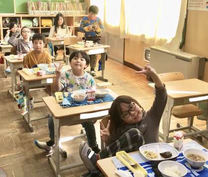 11月25日(月)の梅坪小(5)2年生の給食風景