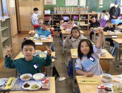 11月25日(月)の梅坪小(6)2年生の給食風景