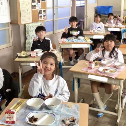 11月25日(月)の梅坪小(9)2年生の給食風景