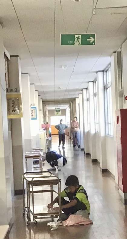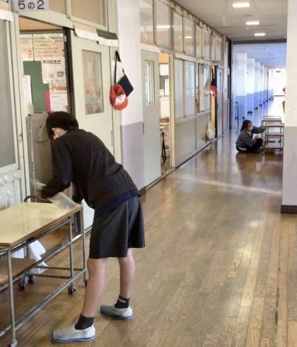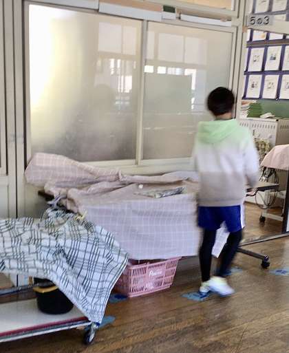 配膳台をきれいに掃除しているのは、給食委員の皆さんです!