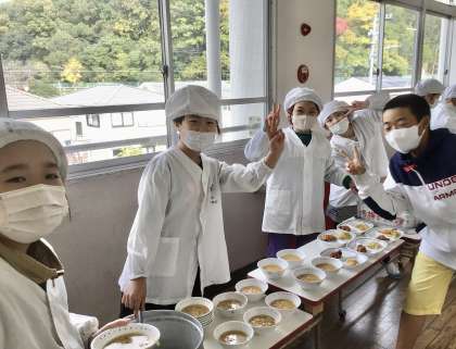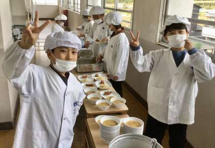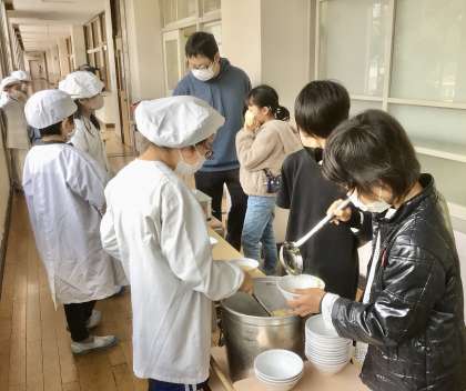 11月27日(水)の梅坪小(4)4年生の給食風景