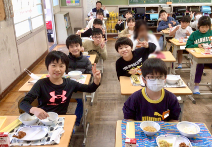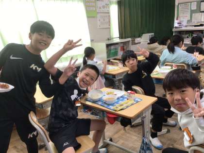 11月27日(水)の梅坪小(6)4年生の給食風景