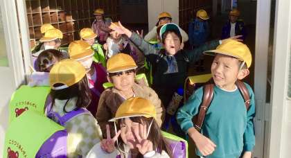 子どもたちが活動している時、休み時間に動くことはないですが、十分に気をつけて通りましょう。