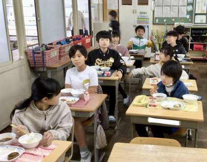 11月28日(木)の梅坪小(8)5年生の給食風景です!