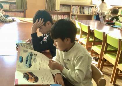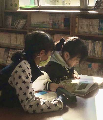 図書室では、読書と調べ学習の資料本探しでにぎわっていました。