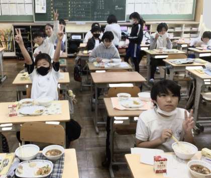 11月29日(金)の梅坪小(10)6年生の給食風景