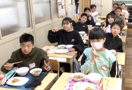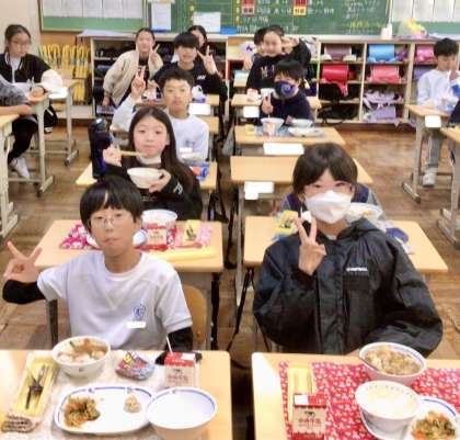 11月29日(金)の梅坪小(12)6年生の給食風景