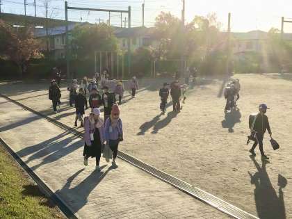 今朝、委員の皆さんが各教室で 協力の呼びかけをしていました。