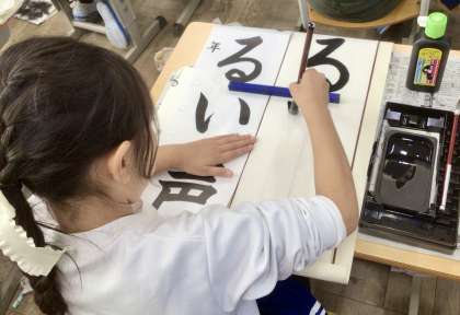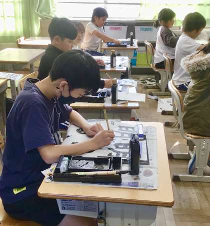 12月2日(月)の梅坪小(14)4年生 書き初めの練習