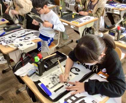 12月2日(月)の梅坪小(15)4年生 書き初めの練習