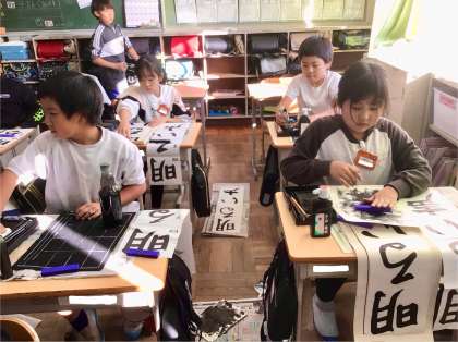 4年生も 字形を意識して、筆の運びや止め、はね、払いなどの技術が向上しているようです。