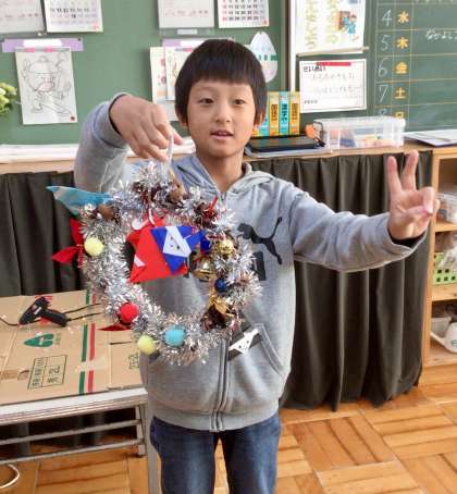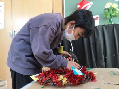 12月3日(火)の梅坪小(5)クリスマスリースづくり 特別支援学級