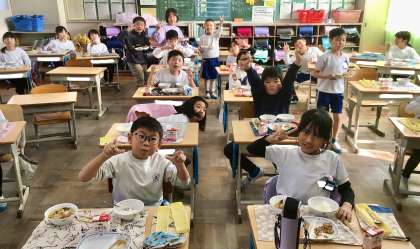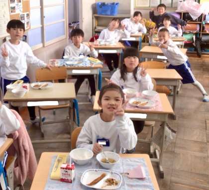12月3日(火)の梅坪小(11)2年生の給食風景