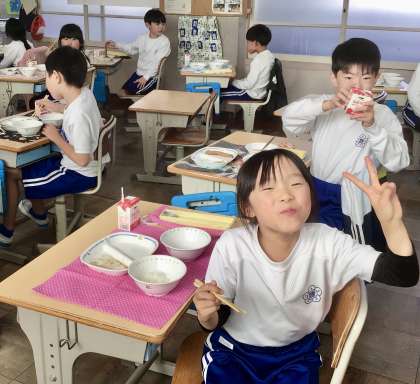 12月3日(火)の梅坪小(12)2年生の給食風景