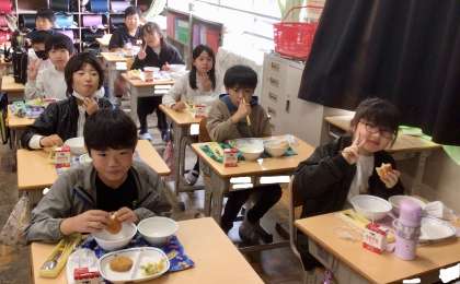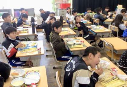 3組さんから2組さんへ。(^^)v 今日も楽しく食べています!