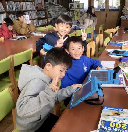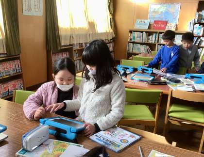 学習用タブレットで調べたり、写真を撮ったりする子もいました。