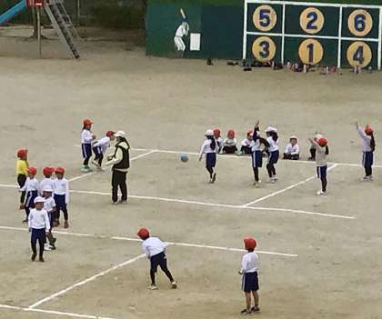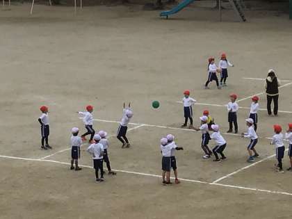 12月6日(金)の梅坪小(6)1年生 体育 ドッジボール