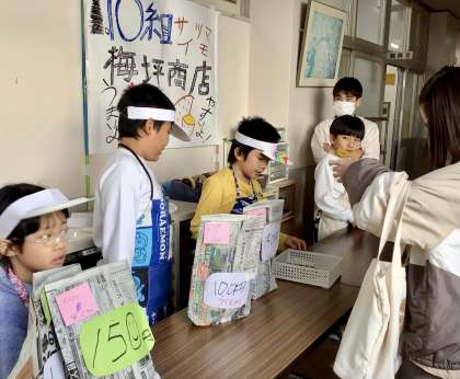 10組のみなさんが、昼休みの時間に 自分たちが育てたサツマイモを職員室前で販売しました!