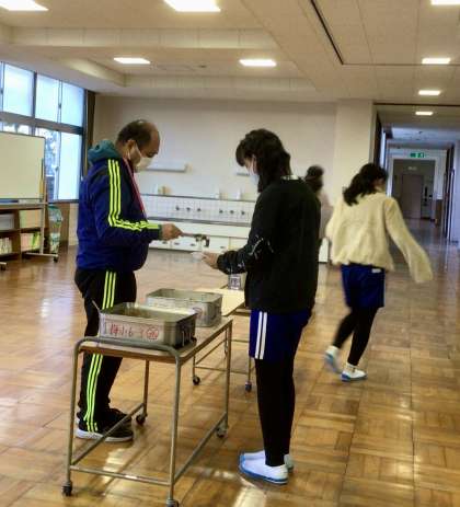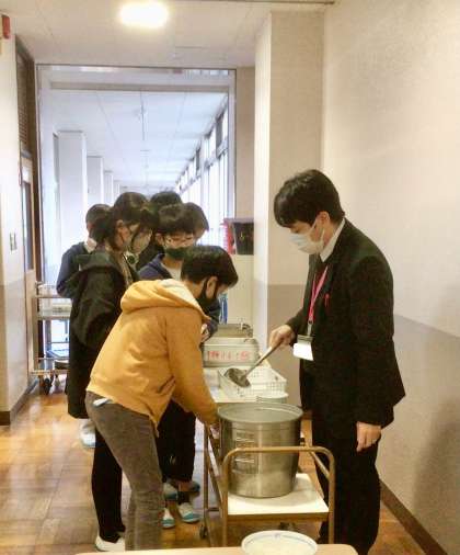 12月9日(月)の梅坪小(4)6年生の給食風景