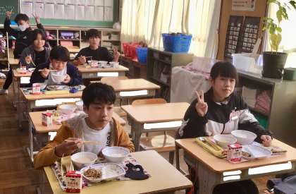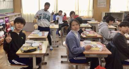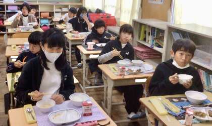 12月9日(月)の梅坪小(6)6年生の給食風景