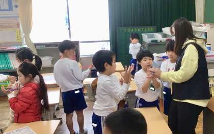 12月9日(月)の梅坪小(11)1年生 生活科 むかしあそび