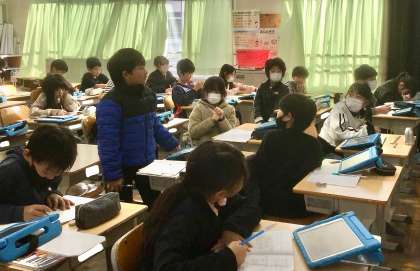 12月9日(月)の梅坪小(16)4年生 社会 災害から暮らしを守る