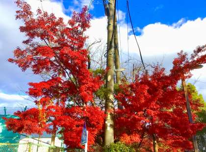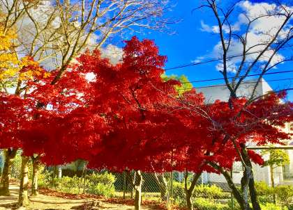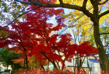 こんな時期に、遊具付近やプールの裏では、まだまだ鮮やかな紅葉を見ることができます!