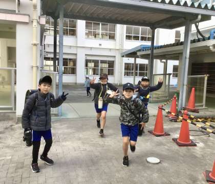 12月11日(水)の梅坪小(1)今朝の登校風景