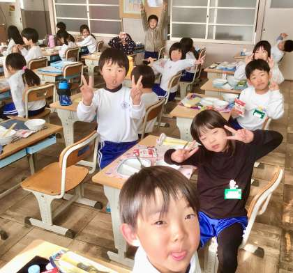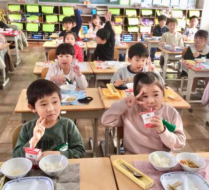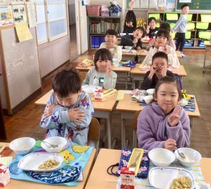 12月11日(水)の梅坪小(7)1年生の給食風景