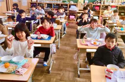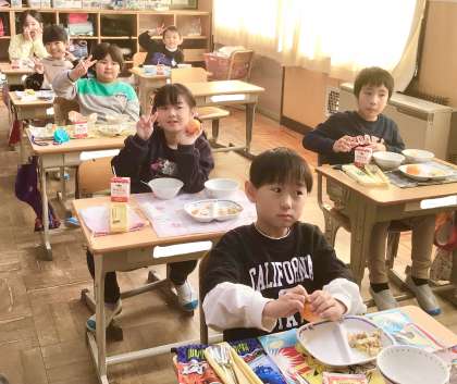 12月12日(木)の梅坪小(7)2年生の給食風景