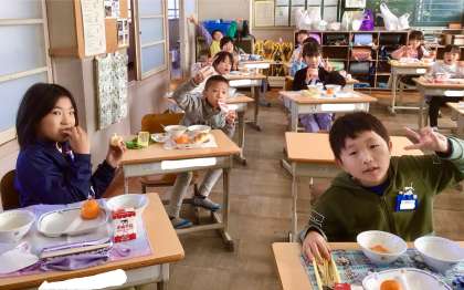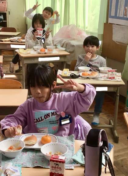 12月12日(木)の梅坪小(9)2年生の給食風景