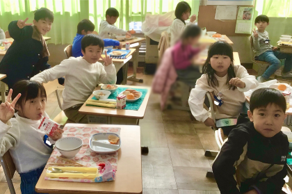 12月12日(木)の梅坪小(10)2年生の給食風景