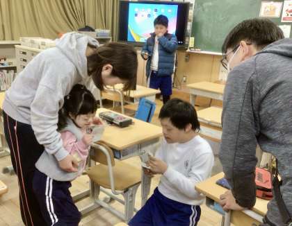 12月16日(月)の梅坪小(4)ALTの授業 特別支援学級