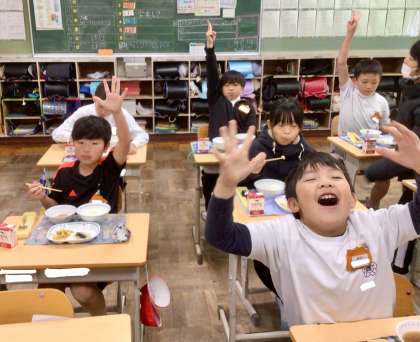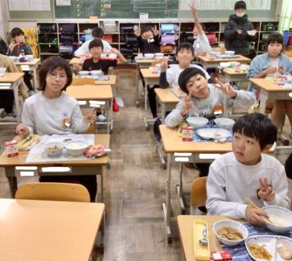 12月16日(月)の梅坪小(11)4年生の給食風景