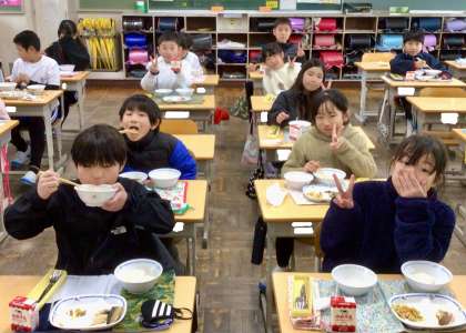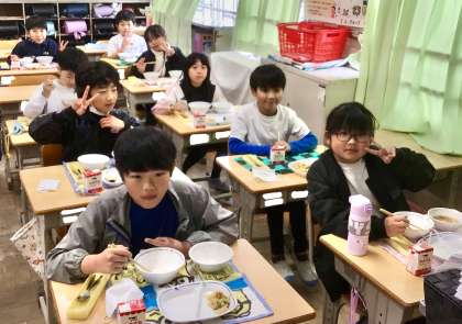 12月16日(月)の梅坪小(13)4年生の給食風景 公開日 2024/12/16 更新日 2024/12/16 各学年から 今日もゆったりと会食を楽しむ、落ち着いた雰囲気の4年生の皆さんでした!^ - ^