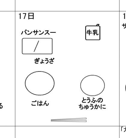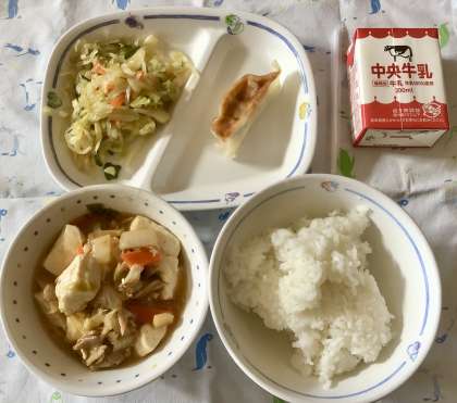 12月17日(火)の梅坪小(10)中華のメニューです! 公開日 2024/12/17 更新日 2024/12/17 お知らせ 今日は中華のメニュー。 とうふの中華にをご飯にかけて食べるのもよし。 ぎょうざにバンサンスーも欠かせない一品。 よく味わっていただきましょう!