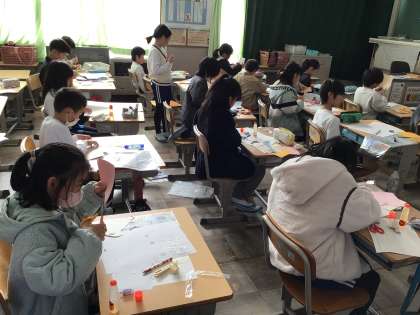 12月17日(火)の梅坪小学校(5) 3年生 図工 公開日 2024/12/17 更新日 2024/12/17 各学年から 版画の版を作り始めました。左右が逆になることをイメージして、下絵を考えることが難しそうでした。一生懸命に紙を切って貼ることができました。