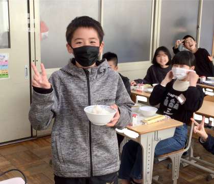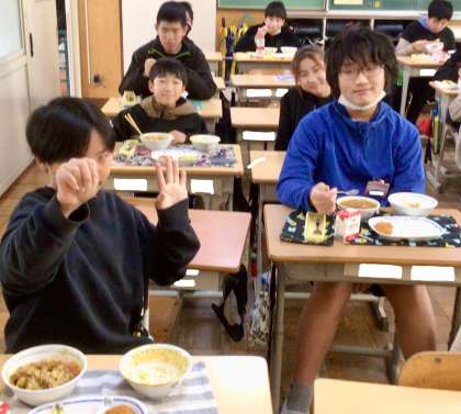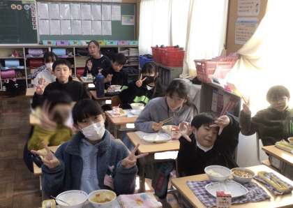 12月18日(水)の梅坪小(7)6年生の給食風景