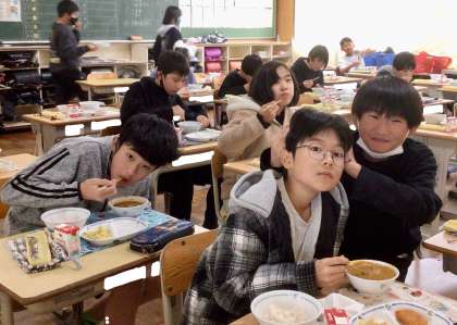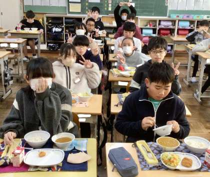 12月18日(水)の梅坪小(8)6年生の給食風景