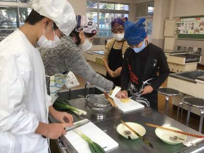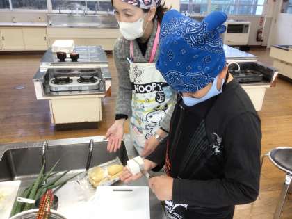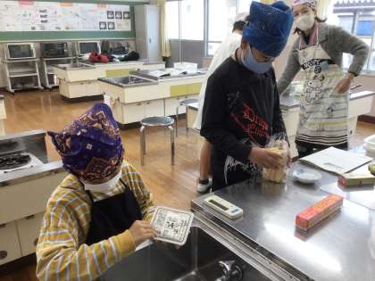 12月19日(木)の梅坪小(1)9、10組 家庭科 みそ汁づくり