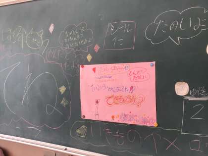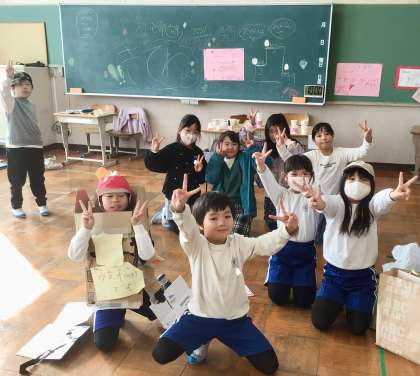 2年生が1年生を招待し、おもちゃまつりが開かれました。