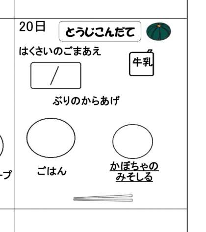 12月20日(金)の梅坪小(7)冬至(とうじ)こんだて!