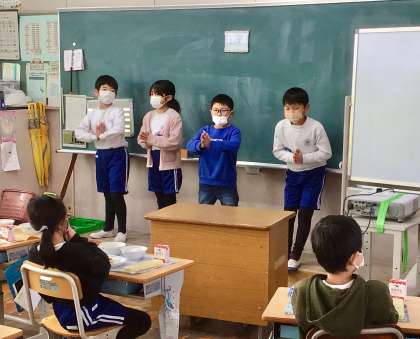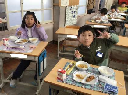 12月20日(金)の梅坪小(9)2年生の給食風景