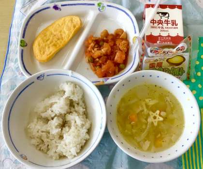 チキンライスにパスタスープ、オムレツ。