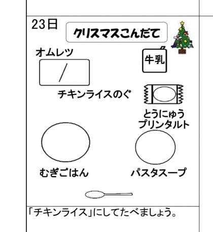 12月23日(月)の梅坪小(3)クリスマス献立!