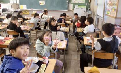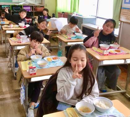 12月23日(月)の梅坪小(6)3年生の給食風景
